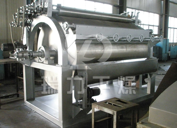3、干燥時間短。物料的干燥周期一般只有10-300秒,在適合于熱敏性物料。若將滾筒干燥機(jī)設(shè)置在真空器中,則可在減壓條件下運(yùn)行。