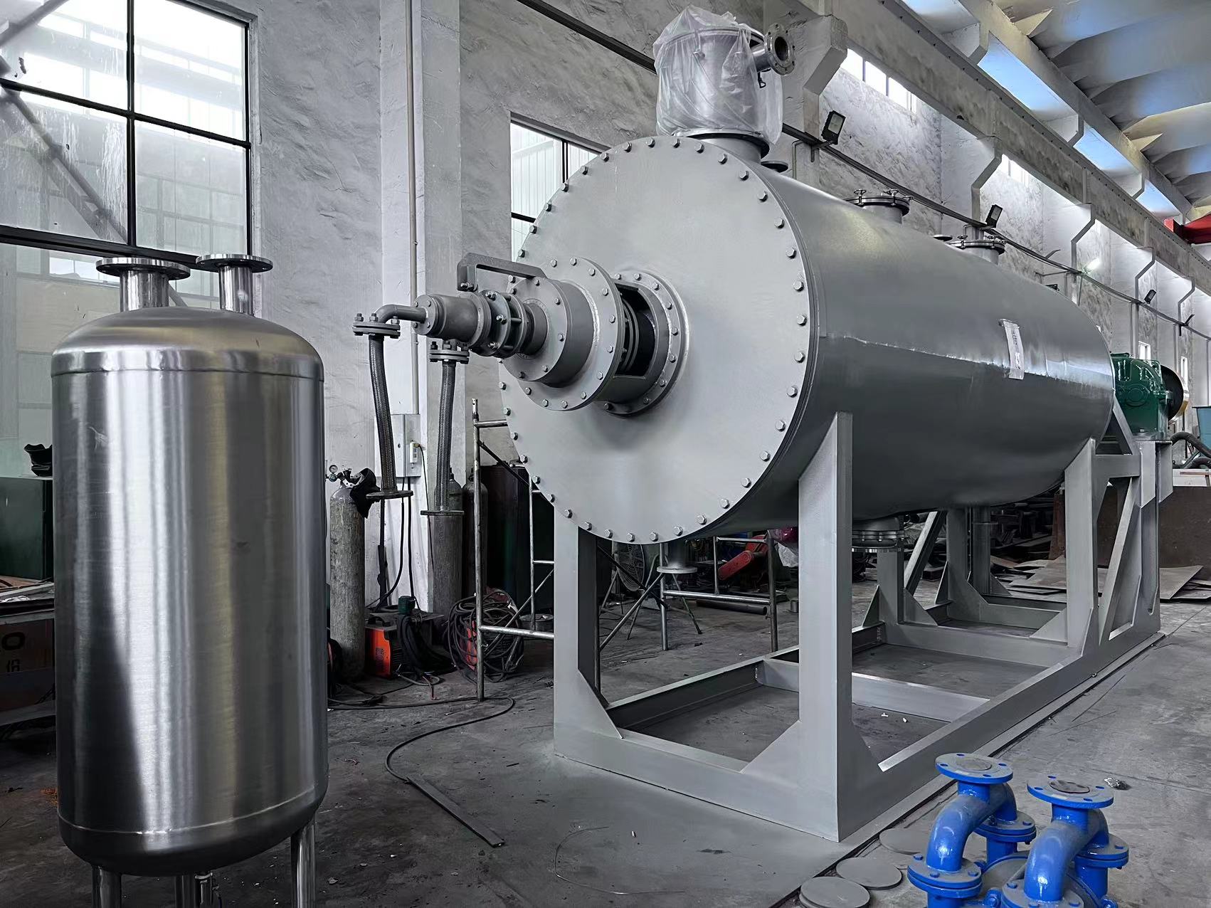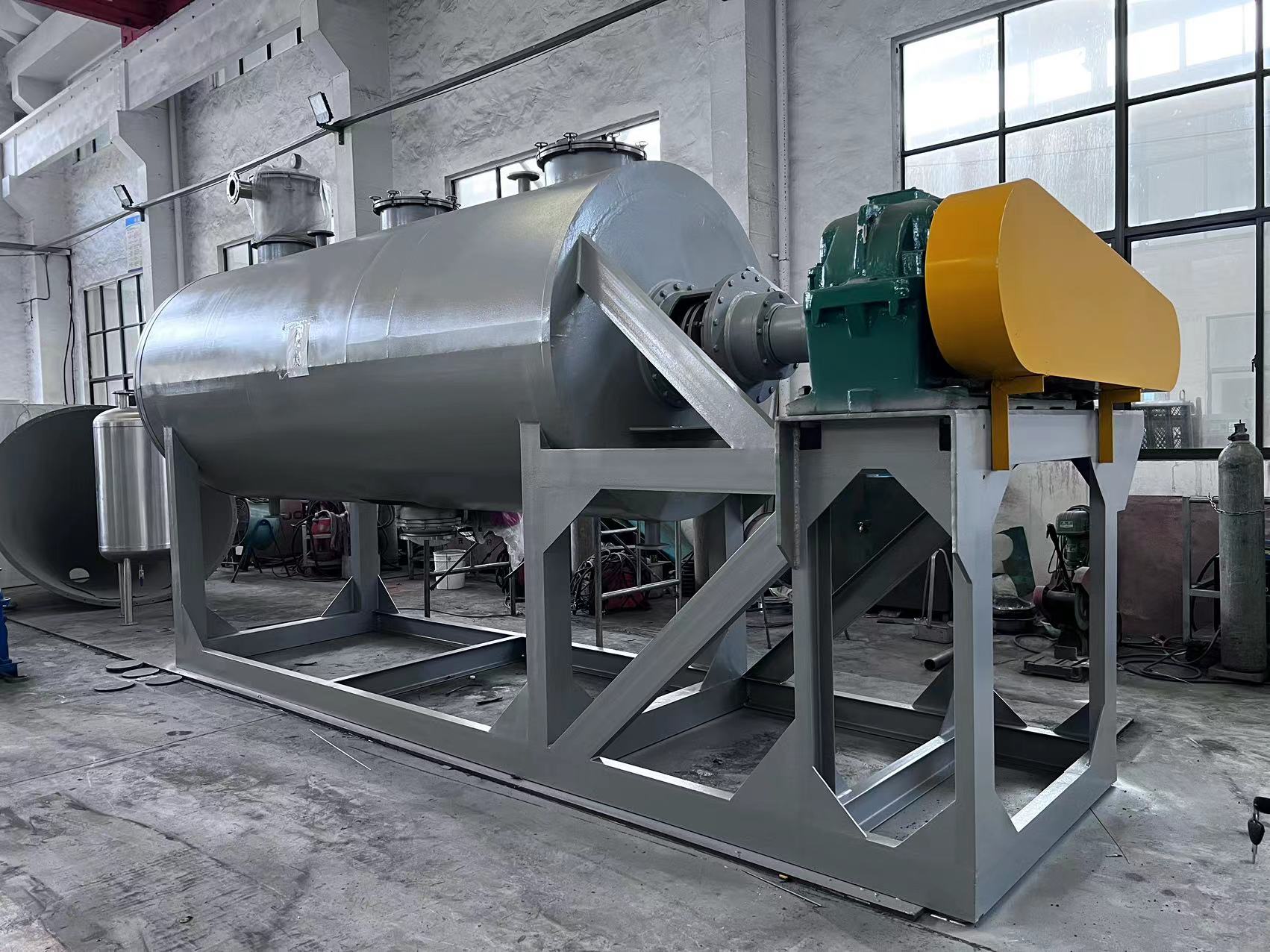 真空耙式干燥機操作簡單,進(jìn)出物料方便,大幅度減輕了工人勞動強度,同時也減少了物料在干燥過程中受到的環(huán)境污染,提高了產(chǎn)品的質(zhì)量,符合藥品管理規(guī)范“GMP”的要求。