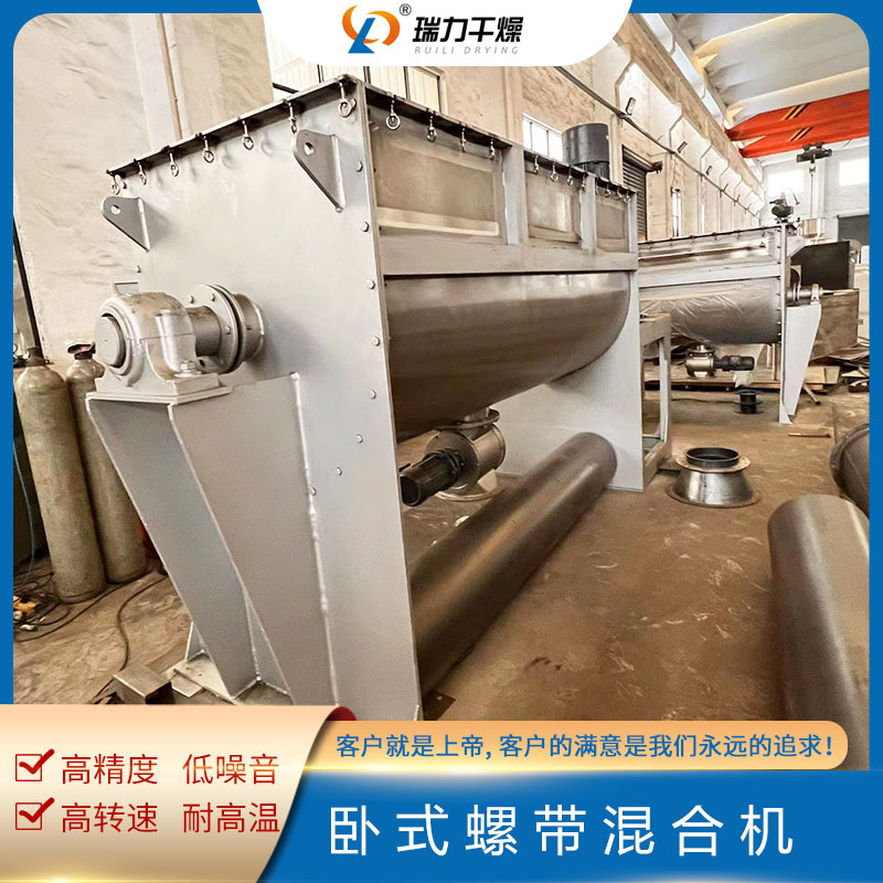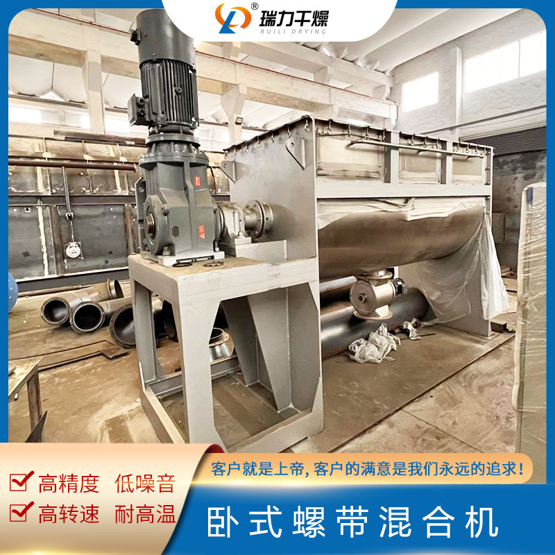 臥式螺帶混合機兩臺發(fā)貨更新時間:2023-04-20 點擊:1407臥式螺帶混合機的傳動主軸上布置雙層螺旋葉片,內(nèi)部螺旋將物料向外側(cè)輸送,外部螺旋將物料向內(nèi)部聚集。物料在雙層螺旋帶的對流運動下,形成一個低動力的混合環(huán)境。安裝于攪拌軸上的內(nèi)外徑螺旋帶動桶體內(nèi)物料,使攪拌器在桶體內(nèi)翻動物料。攪拌裝置工作時內(nèi)螺旋帶動靠近軸心處物料做軸心旋轉(zhuǎn),軸向由內(nèi)至兩側(cè)推動,外螺旋帶動靠近桶壁物料做軸心旋轉(zhuǎn),軸向由兩側(cè)至內(nèi)推動,本混合物料能夠在短時間內(nèi)均勻混合。