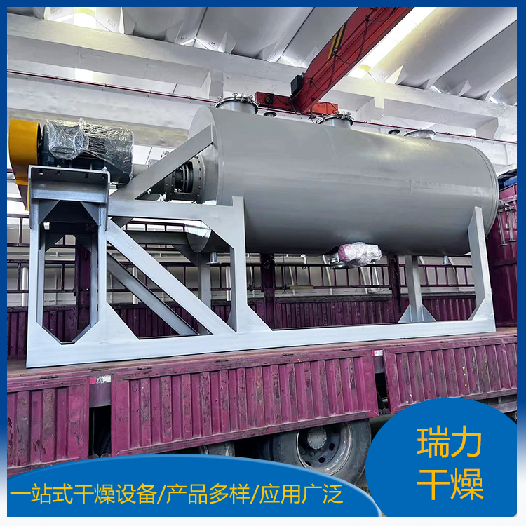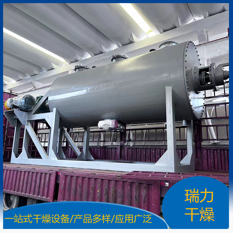 干燥設備在干燥機臥式筒體內(nèi),裝有攪拌軸及攪拌葉。筒體夾套、攪拌軸及攪拌葉均可通入加熱介質(zhì),在攪拌作用下,物料在筒體內(nèi)充分混合與換熱,溶劑蒸汽通過殼體上抽真空口排出,經(jīng)過袋式過濾器過濾夾帶粉塵,進入冷凝器冷凝回收。達到干燥要求后停機, 將物料從筒體下部卸料口排出,再進行下一批料的操作。間歇操作、圓形筒體及動、靜密封點的精密加工,使該設備能達到*的真空度。視物料性質(zhì),筒體內(nèi)壁、攪拌軸等可進行鏡面拋光處理。